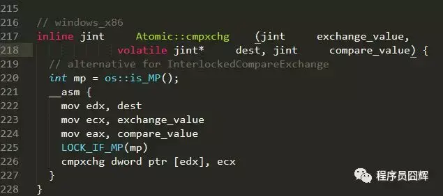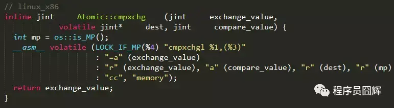 可以看到调用了“Atomic::cmpxchg”方法,“Atomic::cmpxchg”方法在linux_x86和windows_x86的实现如下。