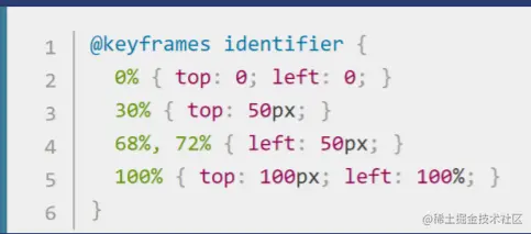 - 使用@keyframes完整语法,一种写法是from to,另一种写法是百分数: