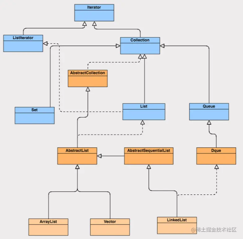 LinkedList 类实现了 List 接口、Deque 接口,同时继承了 AbstractSequentialList 抽象类,LinkedList 既实现了 List 类型又有 Queue 类型的特点;LinkedList 也实现了 Cloneable 和 Serializable 接口,同 ArrayList 一样,可以实现克隆和序列化。