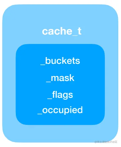 从变量的定义上我们就可以大胆猜测一下,cache_t可能是用来做缓存的,但是究竟缓存了什么?如何进行缓存的?我们目前还无法得知。那么接下来,我们就一步步揭下它的面纱。