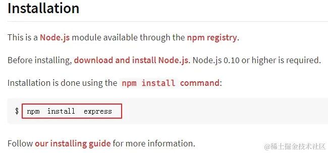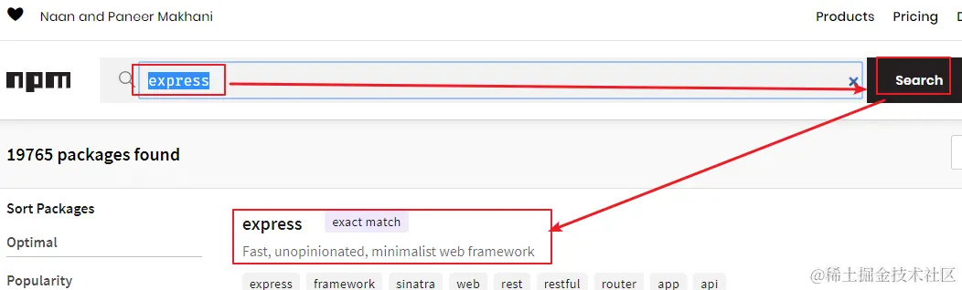 现在用 npm 来分享代码已经成了前端的标配。比如现在大家要使用express包。只需要在npm的官网,输入express搜索下,就能够找到相应模块。
