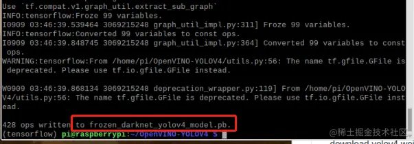 目录下有输出 frozen_darknet_yolov4_model.pb 就转化成功了。