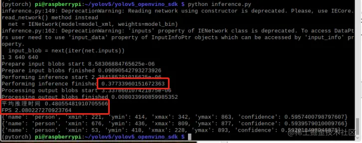 另外,转换后的 IR 模型在 CPU 上和 MYRIAD 上推理的置信度差异也很高,看来 yolov5 还有很大的优化空间。