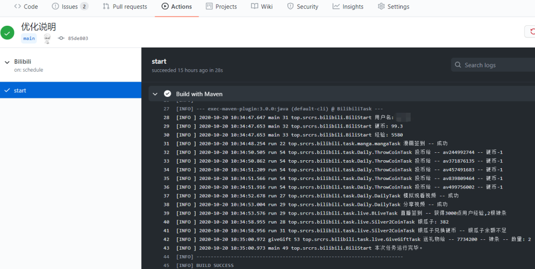 查看actions,显示对勾就说明运行成功了。以后会在每天的10:30执行,自动完成每日任务。