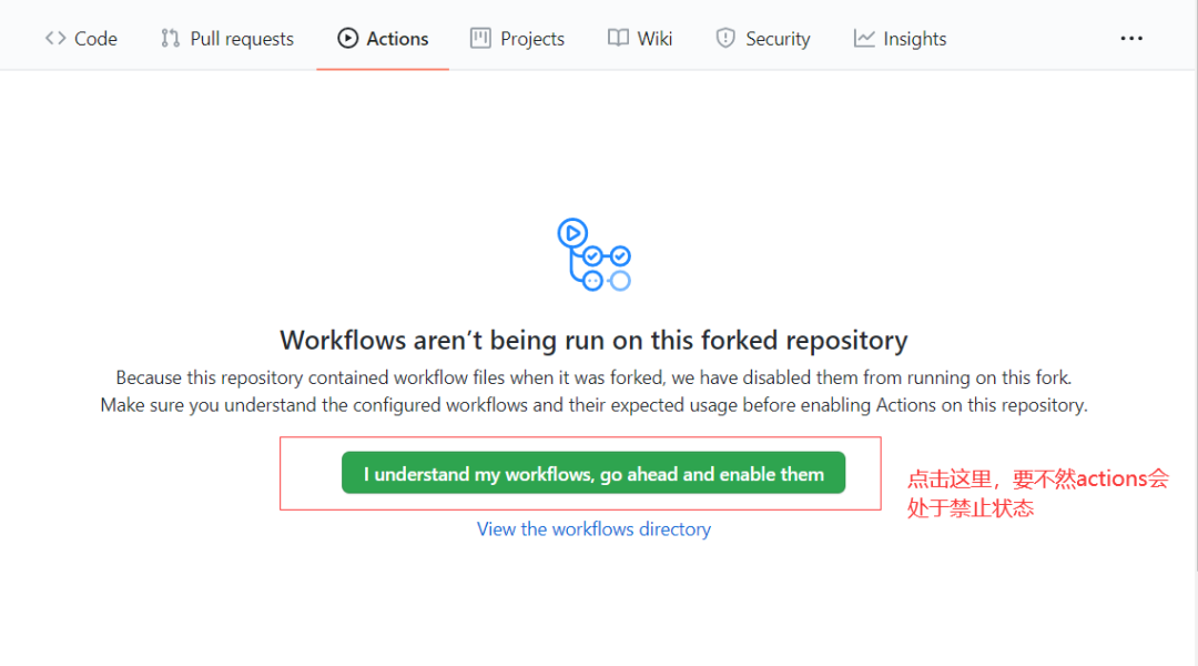 默认actions处于禁止状态,在Actions选项中开启Actions功能,把那个绿色的长按钮点一下。