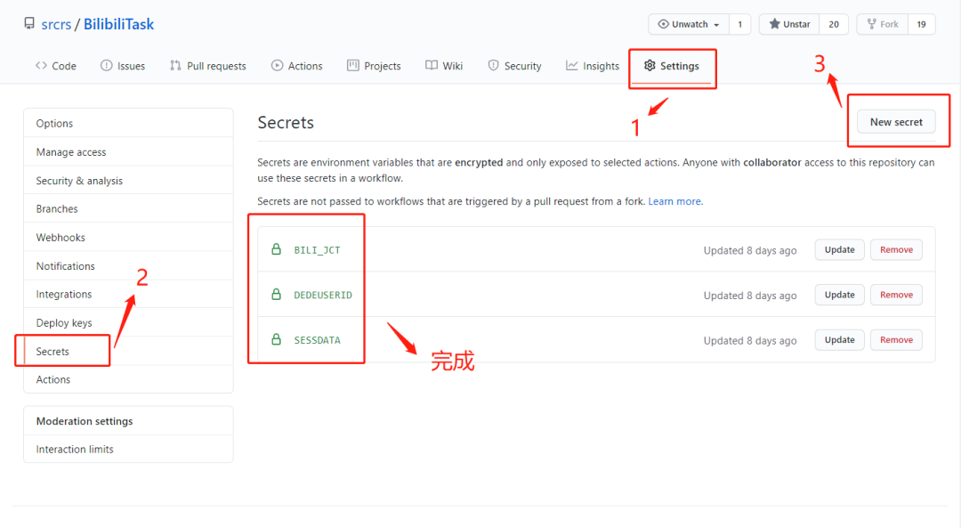 3.将获取到参数填到Secrets