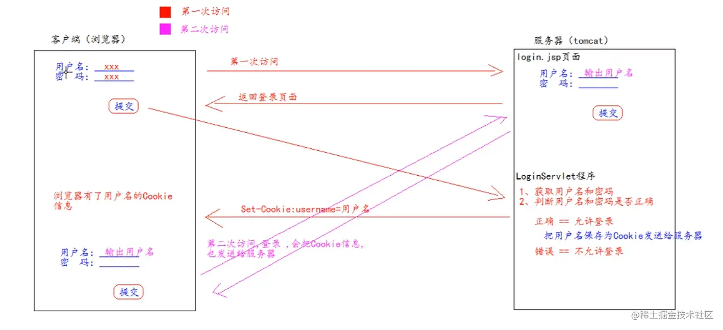 cookie由Servlet程序生成然后发送给浏览器去保存,然后在浏览器每次发送请求时都将cookie发送给服务器。