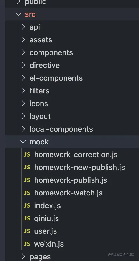 在src下创建mock文件夹,里面存放index.js、user.js等