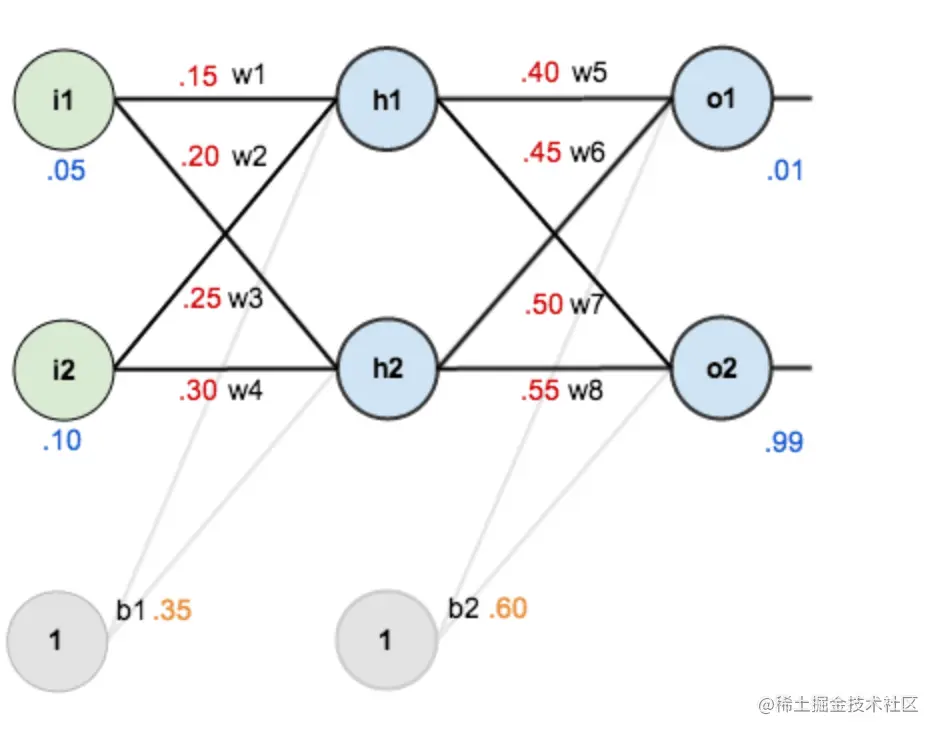 其中,输入数据: i1=0.05, i2=0.10;