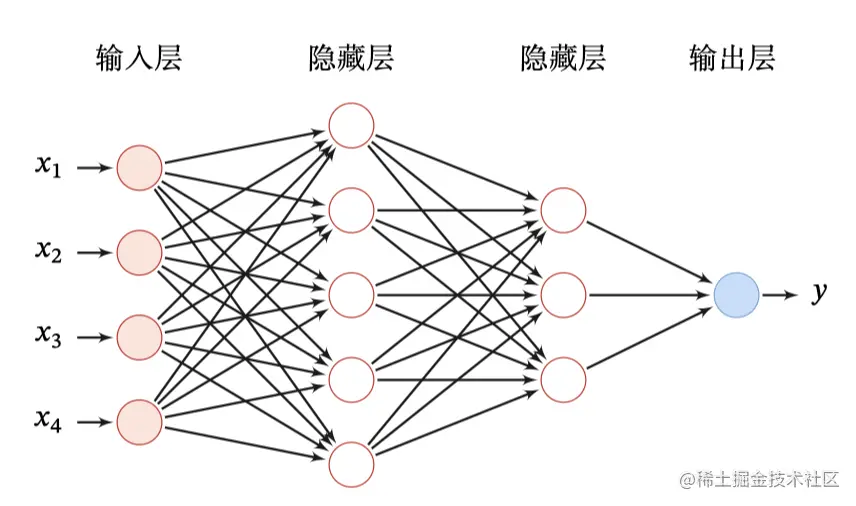 比如下图就是一个最简单的前馈神经网络,第 0 层称为输入层,最后一层称为输出层,其他中间层称为隐藏层。