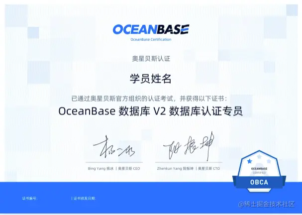 今年10月中旬,OceanBase 在官网上线了 OBCA 认证。仅仅2个月的时间,已有数万学员开启课程体验,近万人参与报名考试,数千人获得 OBCA 认证证书。