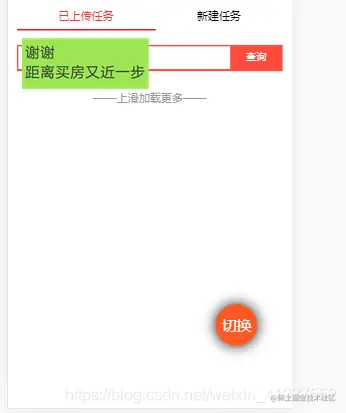 背景:APP页面位置有限,列表形式展示,需要做一个悬浮按钮进行切换列表,并给切换的列表添加水印便于区分。