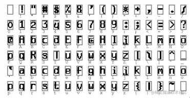 **详细说明:**6 层是全连接层。F6 层有 84 个节点,对应于一个 7x12 的比特图,-1 表示白色,1 表示黑色,这样每个符号的比特图的黑白色就对应于一个编码。该层的训练参数和连接数是 (120 + 1)x84=10164。ASCII 编码图如下: