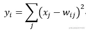 Output 层也是全连接层,共有 10 个节点,分别代表数字 0 到 9,且如果节点 i 的值为 0,则网络识别的结果是数字 i。采用的是径向基函数(RBF)的网络连接方式。假设 x 是上一层的输入,y 是 RBF 的输出,则 RBF 输出的计算方式是:
