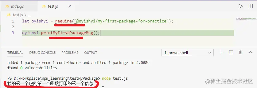 index.js中使用 exports 导出,如下。exports.printMsg = () =>{ console.log("我的第一个包的第一个函数打印的第一个信息"); } -