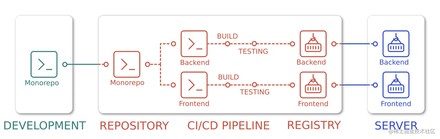在脚本到 deploy 的时候会把需要发布的构建后产物收集起来,然后通过 rsync 或者其他同步工具同步到相应的环境 进行下一步操作。