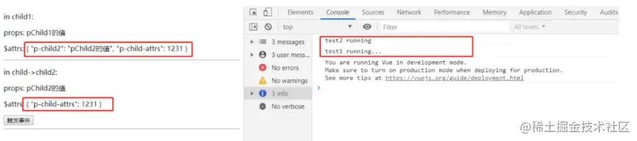 p-child1组件中$attrs为{ "p-child2": "pChild2的值", "p-child-attrs": 1231 };
