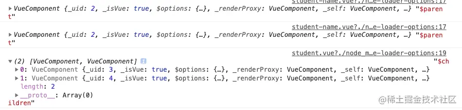 当然我们还可以用过访问children对象来访问组件实例中的方法和数据,或者使用this.$refs[compnentRefName]的方式来拿到具名子元素实例