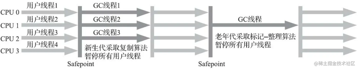 除了并发标记阶段,其他都要暂停用户线程,并非纯粹地追求低延迟,而是要求在延迟可控的情况下尽量获得高吞吐量,所以才能担当起“全功能收集器”的重任与期望。