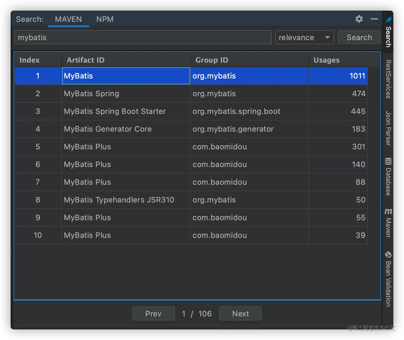 mybatis,然后点击search按钮或者直接回车 - 使用