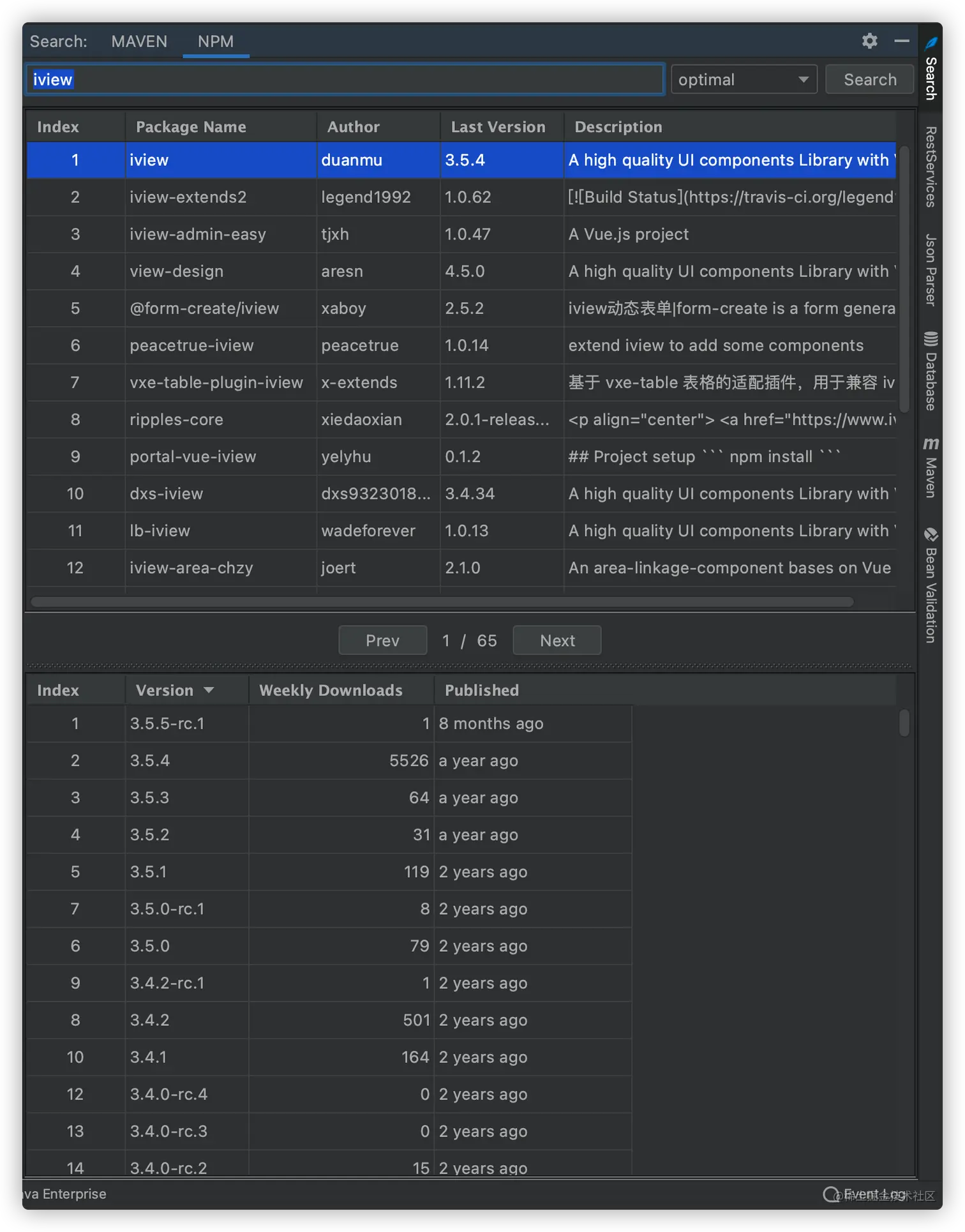 Prev和Next按钮切换分页 - 双击某一列,搜索详细版本列表