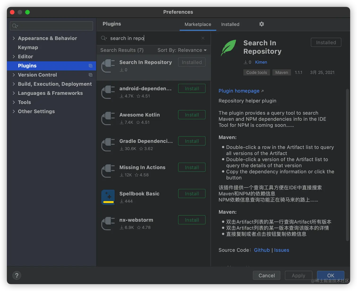 在Plugin repository中搜索Search in Repository