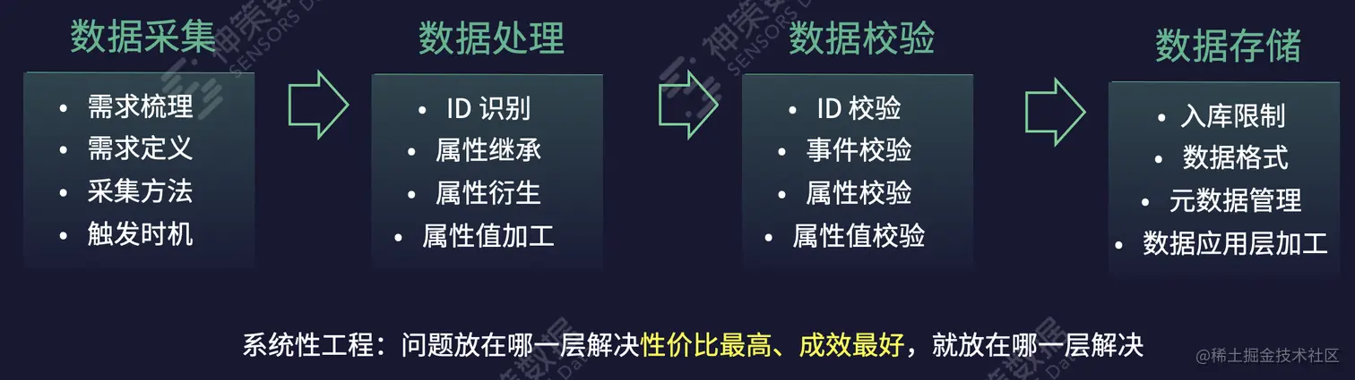 本质上,整个数据基础建设的流程是一个系统性工程,对待每一个问题都不能仅在应用层考虑,而应该关注它的「性价比」和「成效」。比如,为什么我们要严格控制源头和上线前的质量校验?这是因为一个入口、一个出口相对更容易控制,且成效最高。