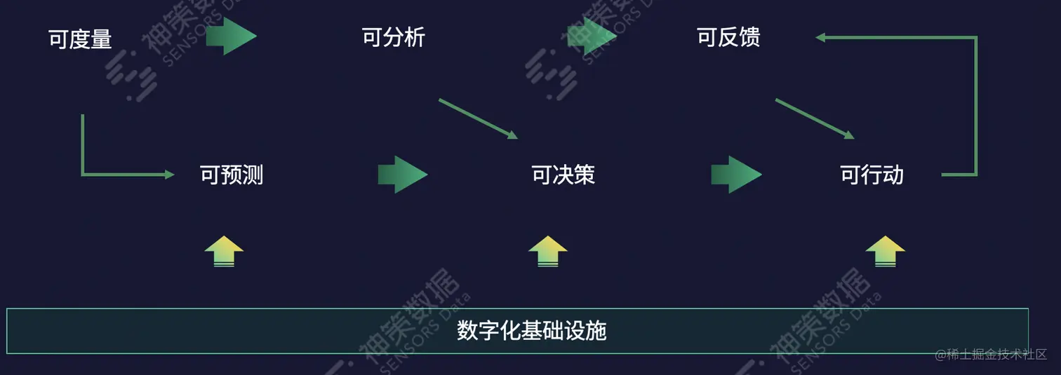 可度量、可分析、可反馈三个层面更偏向数据角度,但业务体系和数据体系属于并行耦合的关系。