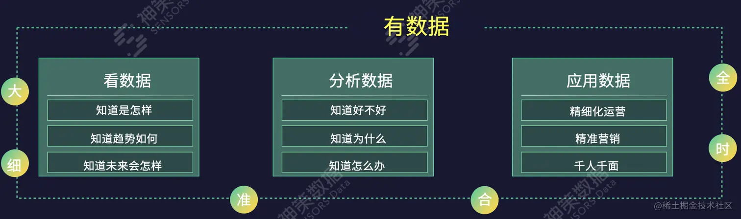 在数据基础建设这件事情上,在不同的业务场景中对数据的需求是不一样的。很多企业最初只是想要做一些基础数据采集,查看某些功能的用户点击率、使用情况、崩溃情况等;但是在应用数据的阶段,数据本身的丰富度和维度至关重要。在神策过往服务客户的过程中,特别是 2017-2018 年期间,大部分客户对数据的需求并没有那么迫切;但到了 2019 年初,整个大环境变了,企业开始加速精细化运营进程。因为一旦精细化运营、降本增效的诉求加入议程时,企业对数据质量的诉求也会明显提升。在这个阶段,外界看到的最明显的表现是,企业在招聘数据基础建设、数据分析应用领域的人才投入显著增加。