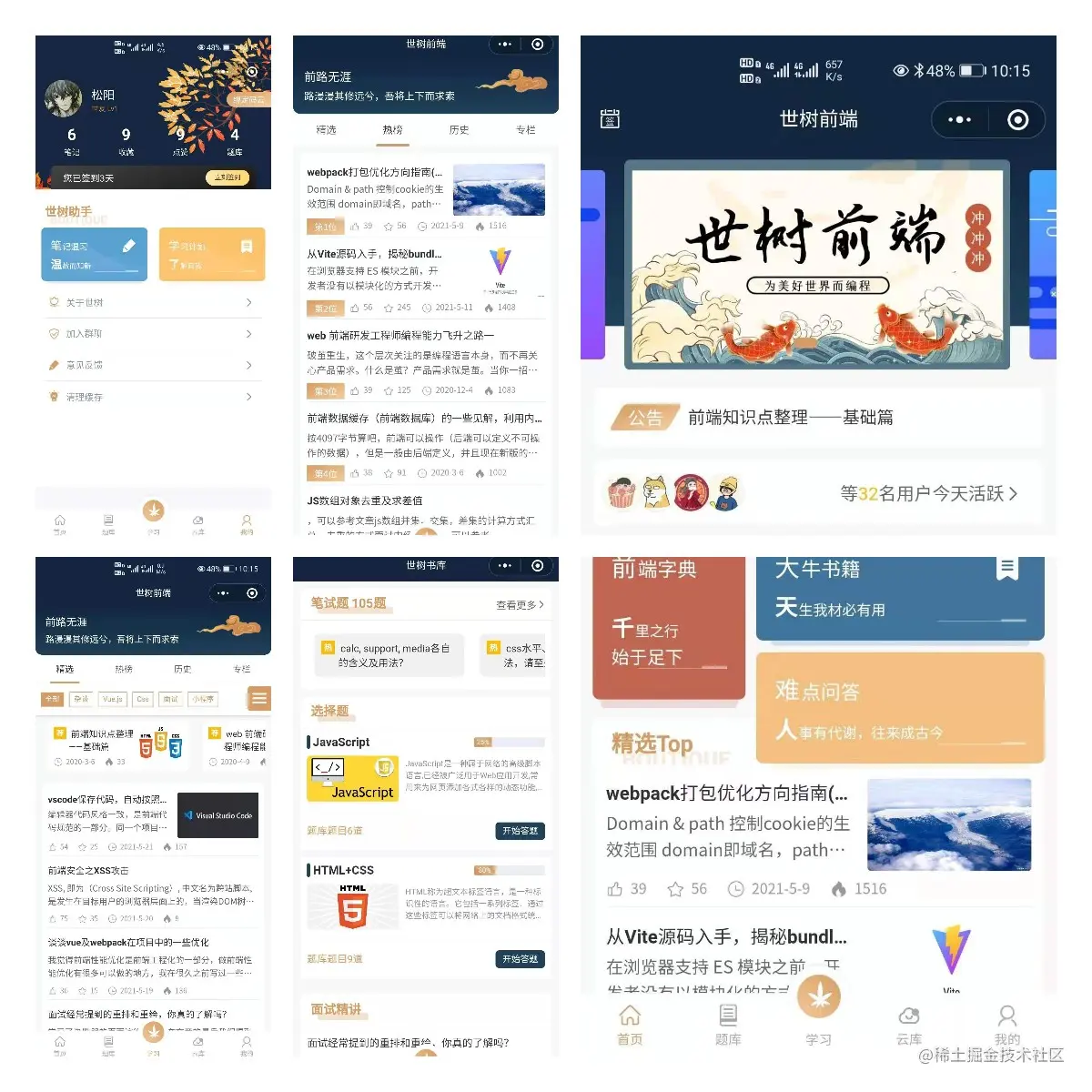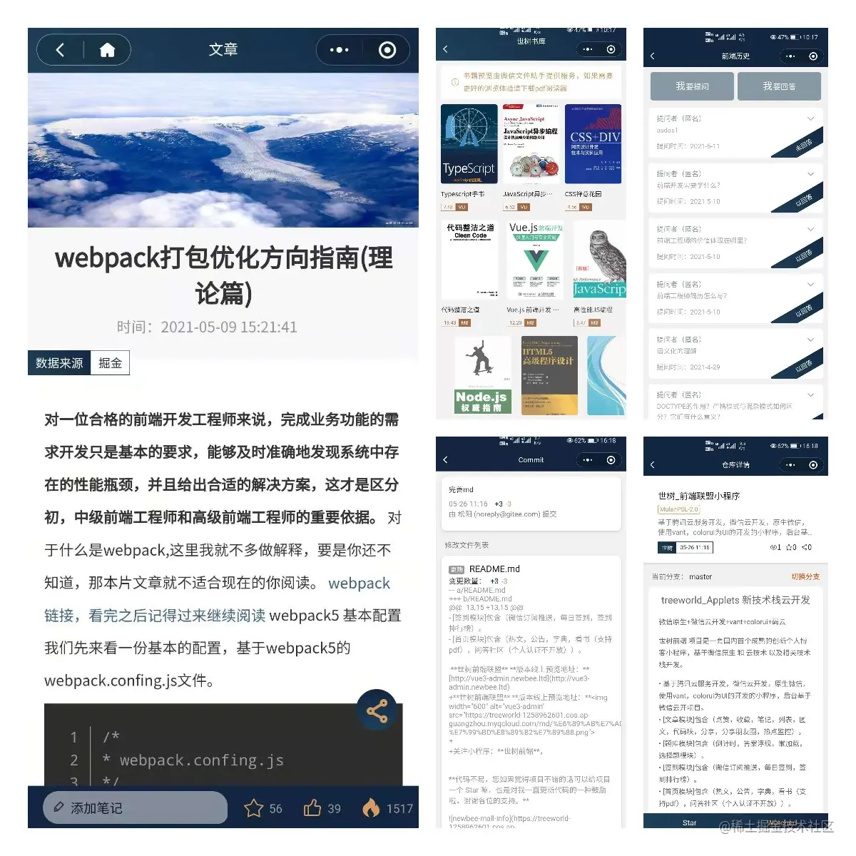 - [首页模块]包含(热文,公告,字典,看书(支持pdf),问答社区(个人认证不开放))。