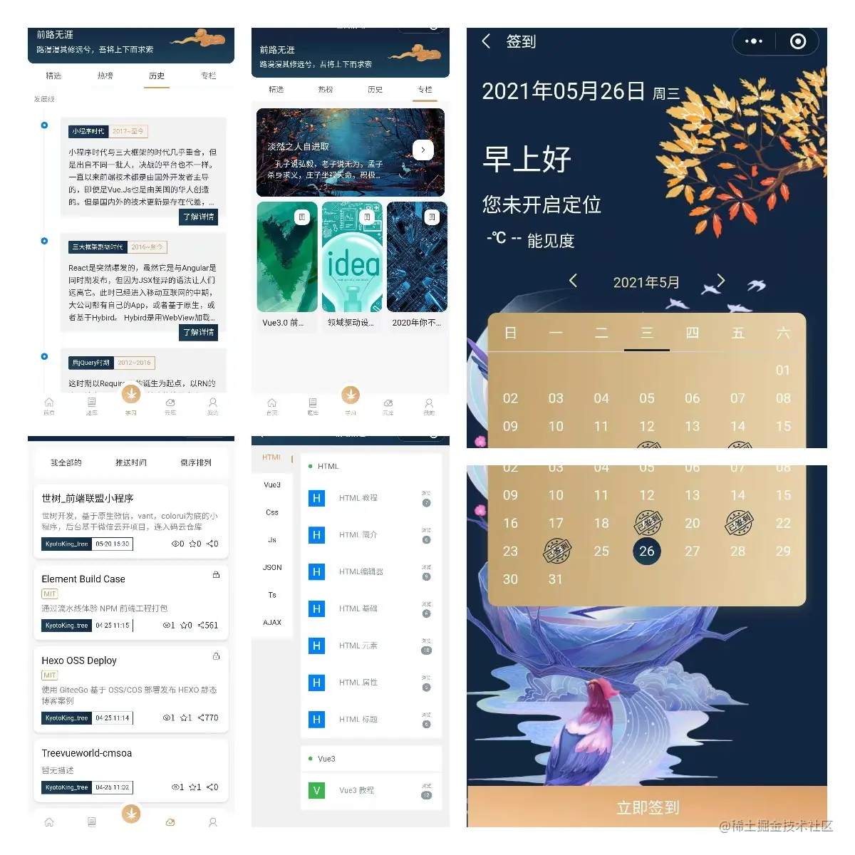 - [签到模块]包含(微信订阅推送,每日签到,签到排行榜)。