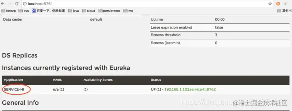 你会发现一个服务已经注册在服务中了,服务名为SERVICE-HI ,端口为7862