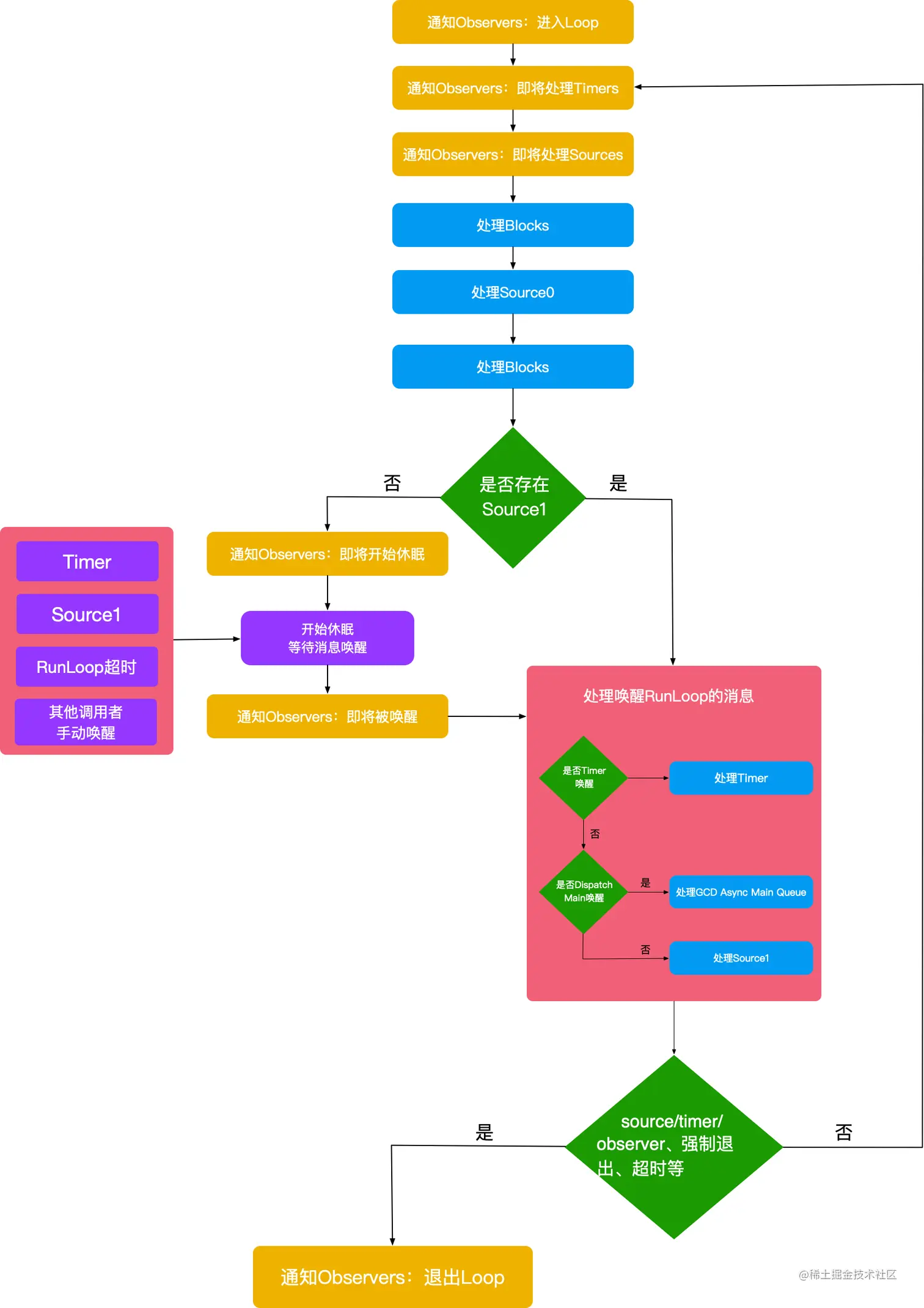 - 黄色:表示通知Observer各个阶段;