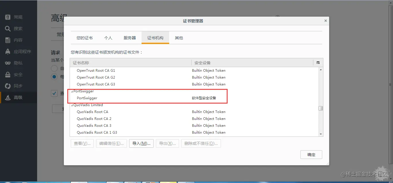 导入成功后发现证书机构中多出ProtSwigger