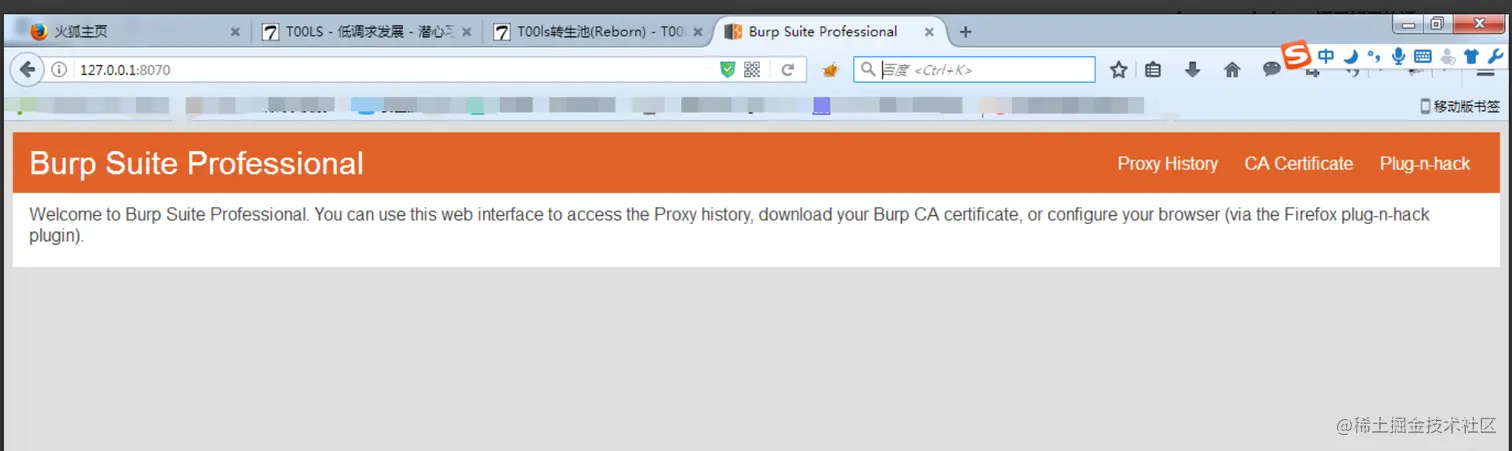 在浏览器中访问burp设置的代理地址