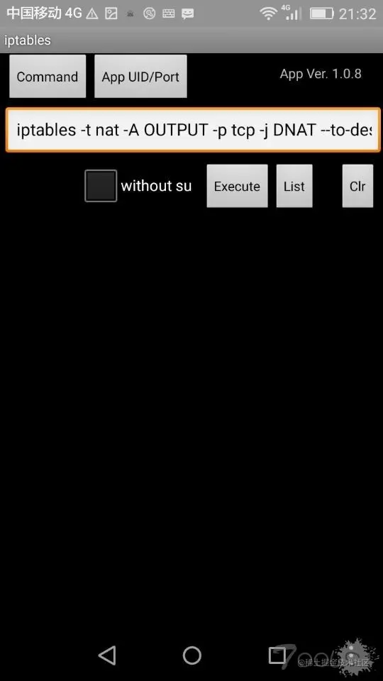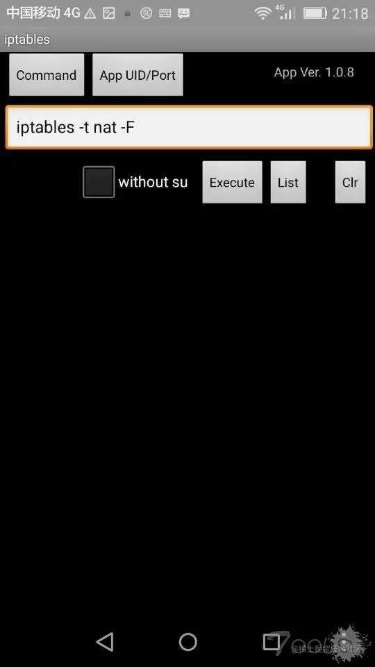 清除iptables设置命令 ,如果不清除命令的话会造成你手机不能正常使用。