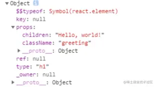 下面截图是上面代码createElement后的产物,本质上就是个React Object( extends Object):