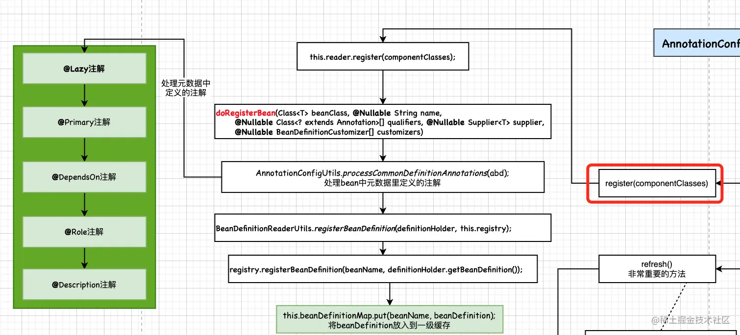 这是AnnotationConfigApplicationContext方法的构造函数, 里面第二步调用了register()方法.
