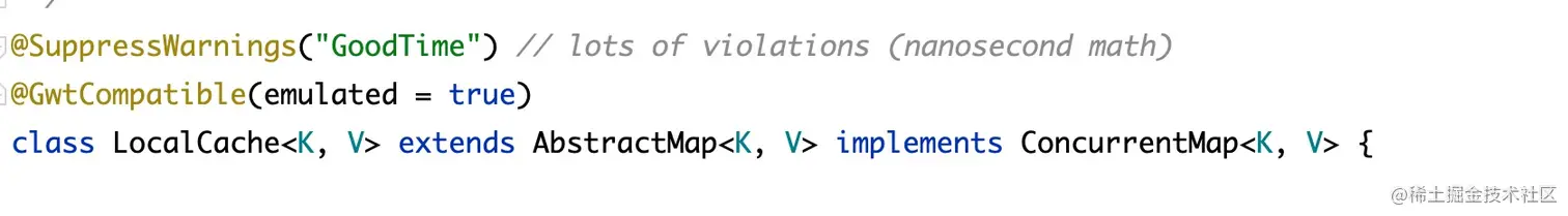核心代码都在 LocalCache 这个文件中,并且通过这个继承关系可以看出 Guava Cache 的本质就是 ConcurrentMap。