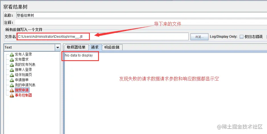 Linux服务器用命令执行了jmeter脚本,在本地查看结果时发现结果树种的“请求、响应数据”都显示为空,有错误日志中也看不出所以然,请看演示!