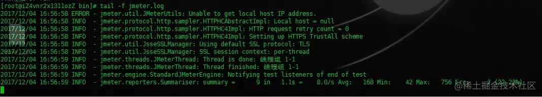 再查看jmeter.log日志,发现失败的请求并未有错误日志(当然验证的参数错误,并非配置等错误)