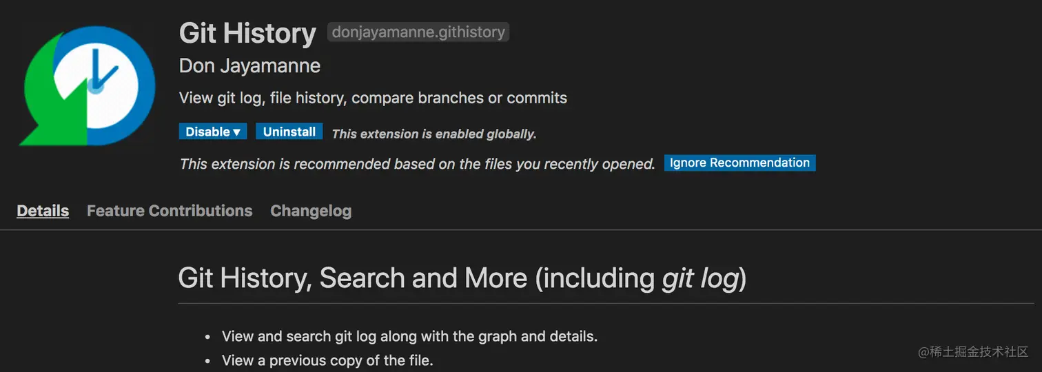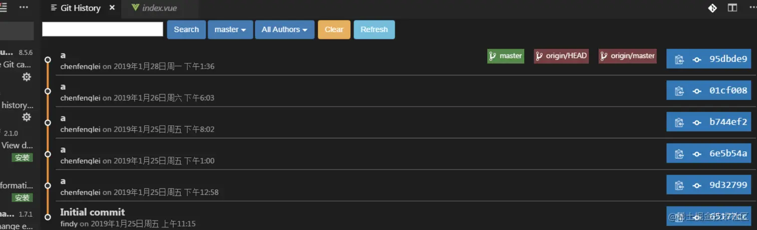 说明:查看文件的历史记录(Git日志)或文件中的行历史(Git Blame)