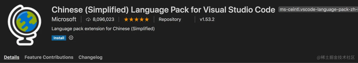安装后,在 locale.json 中添加 "locale": "zh-cn",即可载入中文(简体)语言包。