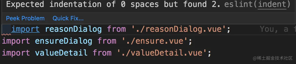 如果不符合之前配置eslint规则的,就会出现红色波浪线,鼠标移上去 会显示具体的错误。