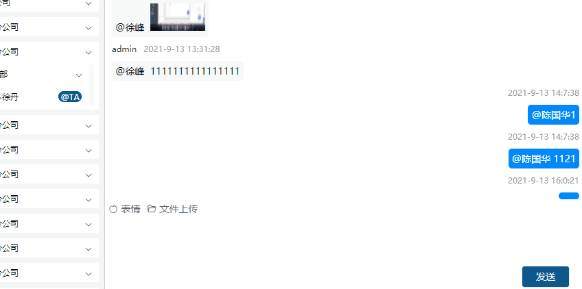 当用户点击到某个联系人时,将点击的人 放到输入框里 显示 @xxx [ 经过格式化处理 ] , 并将选中的联系人信息加入到发送消息的 json 对象中。