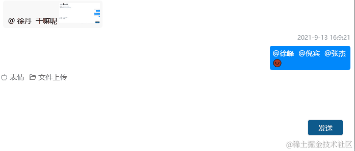 一开始, 我是 自己造了个 @ 功能 轮子 搞了搞,后来才发现市场上有相应的轮子,直接用第三方了,挺不错的 vue-at。