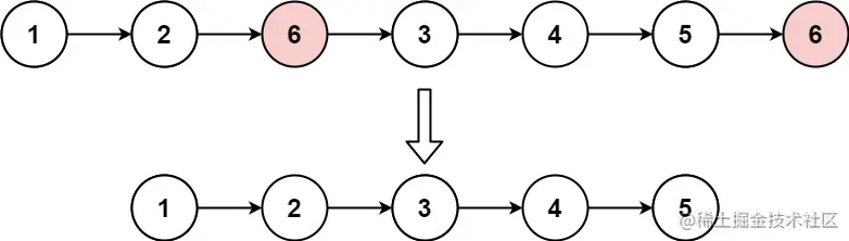 输入: head = [1,2,6,3,4,5,6], val = 6