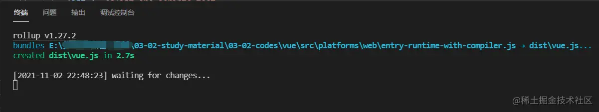 npm run dev, 我们找到 package.json 中script下的 dev,可得知rollup打包构建的时候执行的这条命令。