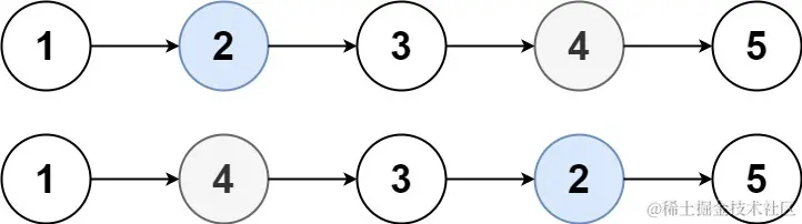 cur到达终点时,slow离终点的距离刚好是k - 1, 它也是我们要找的倒数第k个节点; - 交换