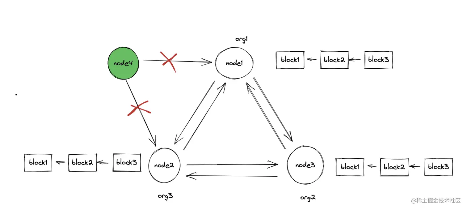 联盟链与公链最大的不同在于它的网络是准入制的,得到许可之后才能加入,所以联盟链中所有的节点都是可信的,而且节点的数量也会控制在一定范围内,外部的节点无法随意加入。